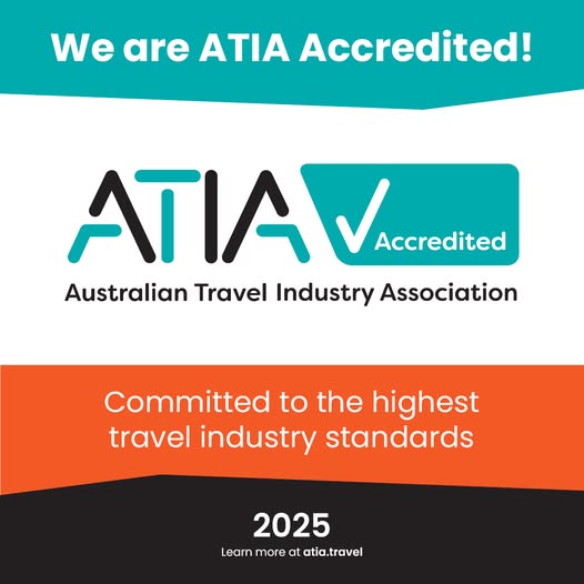 We’re proud to be ATIA Accredited, displaying the ATIA Tick—a symbol of trust, integrity, and industry excellence. This accreditation means we meet the highest standards in the travel industry, so you can book with confidence.
